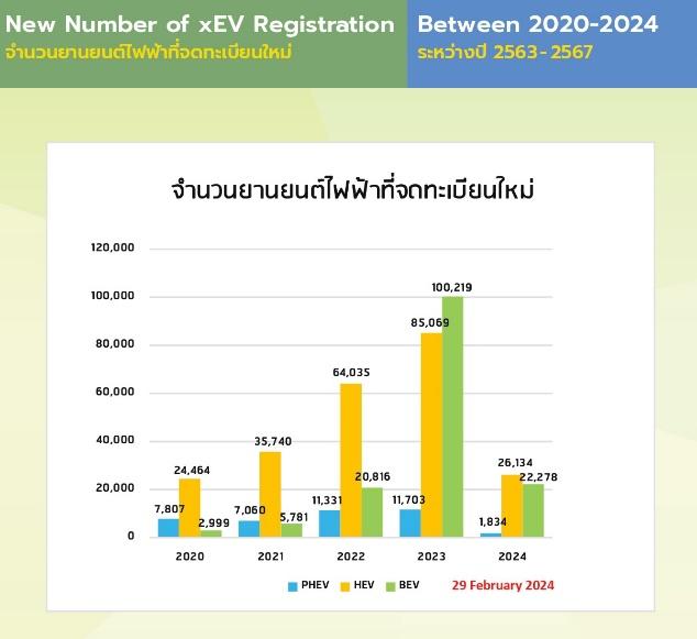 ข้อมูล : สถิติการจดทะเบียนยานยนต์ไฟฟ้าทุกประเภท ย้อนหลัง 5 ปี (พ.ศ. 2563-2567) ณ วันที่ 29 ก.พ. 2567