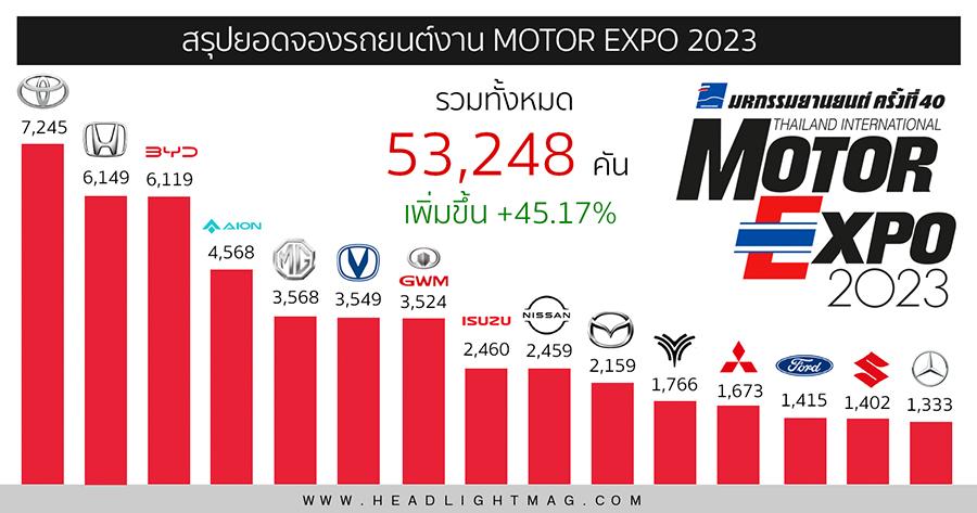 15 อันดับแรก ที่มียอดจองรถยนต์สูงสุด งาน MOTOR SHOW 2023
